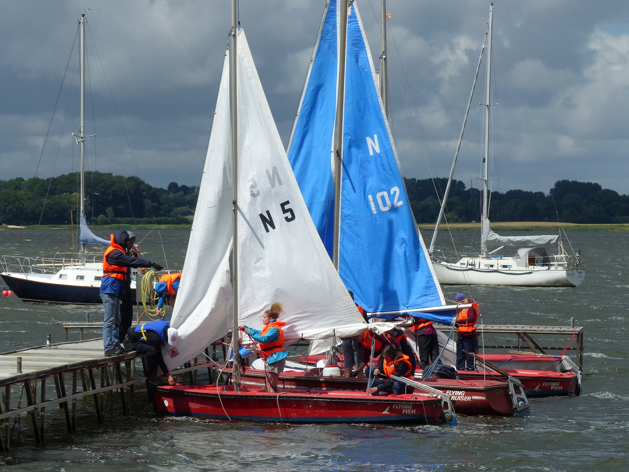 Ein großer Spaß für Groß und Klein bieten mehrere kleinere bzw. leichtere Jollen, Piraten und Optimisten, die an Land gelagert und zum Fahren über eine kleine Slipbahn ins Wasser geschoben werden können. Wer sein eigenes Boot mitbringen möchte, kann es, nach Absprache, natürlich gerne dauerhaft auf dem Vereinsgelände lagern. Je nach Alter, Bootsgröße und „Wetter“ ist das „Slippen“ auch alleine möglich.